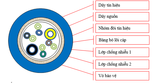 - Cáp điện hỗn hợp, Công ty cổ phần Viễn thông Telvina Việt Nam sản xuất có cấu tạo ruột dẫn bằng đồng, cách điện và vỏ bảo vệ bằng nhựa PVC có phụ gia chống cháy, phù hợp sử dụng trong mỏ hầm lò.