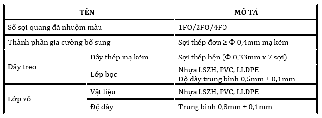 - Gồm các yêu cầu chung về quang và cấu trúc cho loại dây thuê bao đệm chặt chứa từ 1 đến 4 sợi quang.