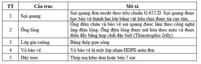 - Sợi quang được dùng là loại đơn mode – chiết suất bậc và là vật liệu thuỷ tinh chất lượng cao (Theo khuyến nghị ITU-T G.652.D và TCVN 8696: 2011).
